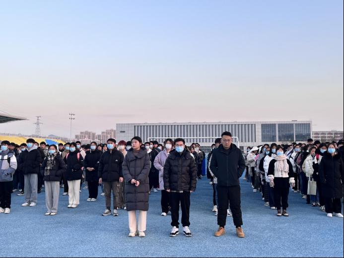 2022年12月5日上午7点,beat365英国官方网站在学校操场举行了升旗仪式。参与本次升旗仪式的有beat365英国官方网站团总支书记侯绪芳老师、团总支副书记杨雯雯老师、学生党支部书记孙浩老师、2022级普本新生以及院学生会的同学们。