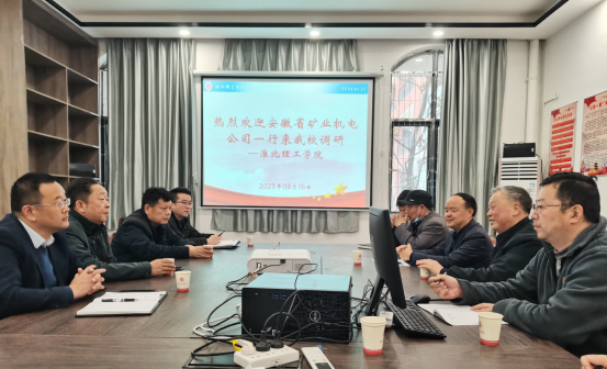 2023年3月16日上午,安徽省矿业机电装备有限责任公司李凤荣党委书记、董事长一行,来beat365官网进行校企合作调研,进一步落实校企合作。汪建利副校长、朱昌杰院长及相关专业负责人参与本次调研。