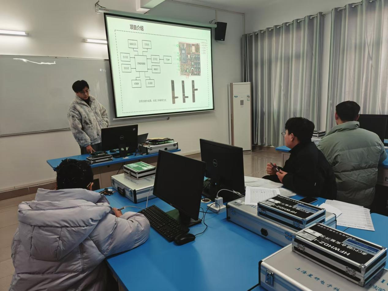会上,每组依次展示了项目成果,涵盖项目内容、实施流程、嵌入式系统、ARM体系及开发平台等基础知识。特别是在智能锁产品分析环节,学生们从市场需求、产品特性和用户体验等角度进行了全面解读,并演示了智能锁相关模块的功能,获得师生好评。