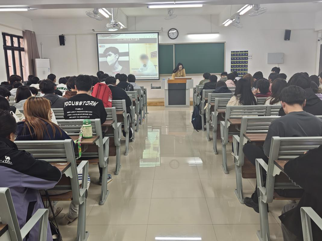 班会还邀请了大一新生班班主任老师参与主题班会,班主任老师们结合当前诈骗手法的新变化,如冒充熟人、虚假购物、刷单诈骗等,详细讲解了如何识别诈骗陷阱,并分享了防范诈骗的实用技巧,如安装国家反诈中心APP、不轻信陌生电话和短信等。此外,结合《中华人民共和国宪法》《中华人民共和国民法典》等法律法规,用通俗易懂的语言讲解了大学生应遵守的基本法律义务和权利。同时,通过案例分析的形式,详细解读了校园欺凌、电信诈骗等违法行为的法律后果。