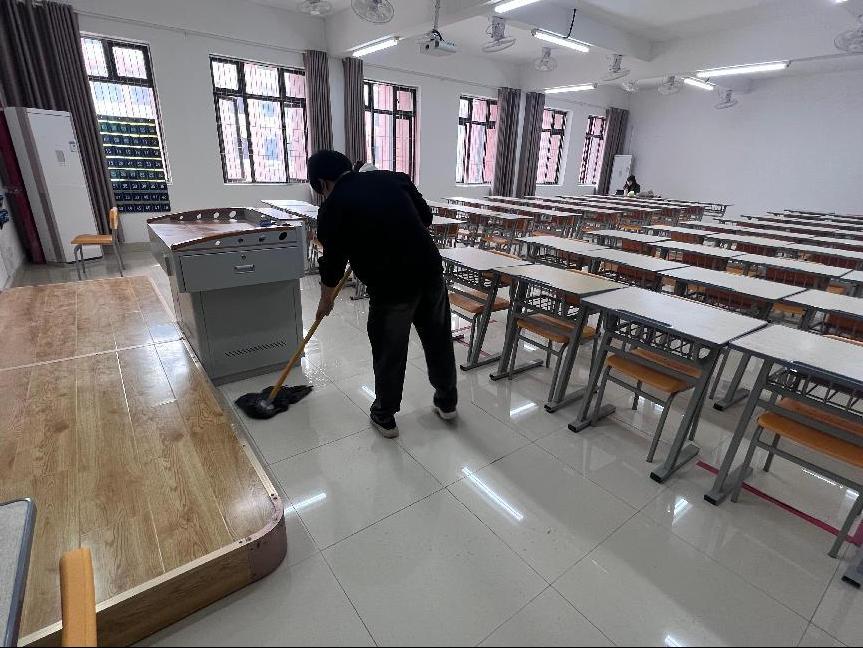 在校园公共区域,同学们分工明确、协作默契,手持夹子、拖把、抹布等工具,对校园道路、楼道、教室等场所进行了全面而细致的清扫与整理。他们认真清理每一个角落的灰尘与杂物,不放过任何一处卫生死角,使校园环境焕然一新,为师生们创造了一个干净、整洁、舒适的学习与工作空间。