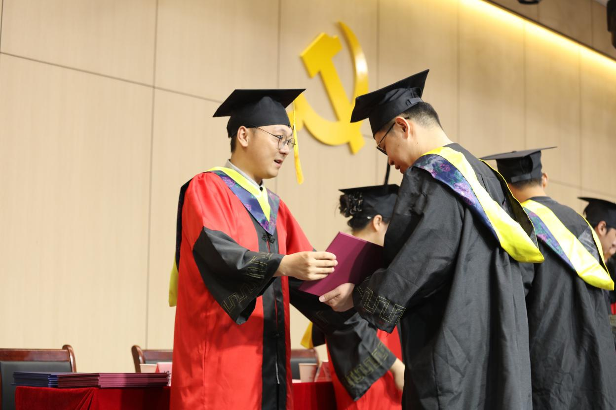随后,在欢快的音乐声中,校领导和学院领导依次为毕业生代表颁发毕业证书和学位证书,并为毕业生拨流苏。拨穗这一传统仪式,象征着毕业生们学有所成,即将开启人生新的征程,现场气氛热烈而温馨,每一位毕业生脸上都洋溢着自豪与喜悦。