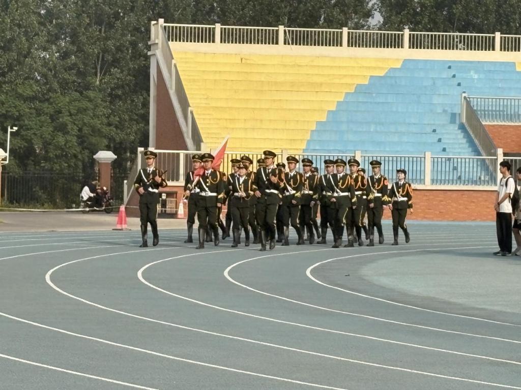 七点十分,旭日初升,仪式正式开始,英雌飒爽的国旗护卫队步伐铿锵,护送五星红旗入场,全体师生庄严肃立,向国旗行注目礼。随着国旗升至旗杆顶端,诚信考试的精神也在每个人心中扎根。