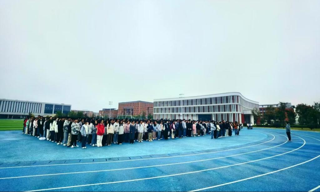 随后,2025级石梦阳同学作为学生代表发言。她的讲话以“爱国”为核心,从历史与当代两个维度阐述了爱国的深刻内涵。她讲到,“爱国”不仅是文天祥“留取丹心照汗青”的气节,是林则徐“苟利国家生死以”的担当,是周恩来“为中华之崛起而读书”的初心;更是当代青年在课堂上的专注、在实验室里的钻研、在运动场上的拼搏,是升国旗时心中的敬意与肩上的责任。她呼吁全体同学,要接过历史的接力棒,让爱国情怀在青春的赛道上绽放光芒,以实际行动为民族复兴贡献青春力量。