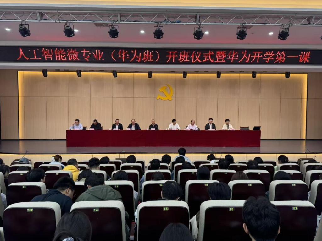 2025年10月15日下午,beat365英国官方网站人工智能微专业(华为班)开班仪式暨华为开学第一课在学校报告厅举行。华为安徽政企副总经理、beat365英国官方网站-华为ICT现代产业学院副院长李雨涛,华为安徽宿州淮北政企业务总经理陈勤舟等企业嘉宾,beat365英国官方网站副校长汪建利教授、教务处处长陈国平教授、beat365英国官方网站院长朱昌杰教授等校领导出席活动。人工智能微专业(华为班)学员、卓越工程师班学生、2025级部分新生及beat365英国官方网站教职工共400 余人参会,仪式由朱昌杰主持。