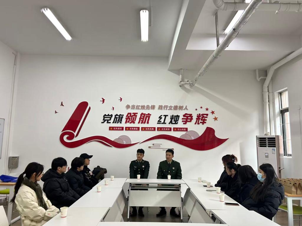 为深入贯彻落实国家征兵政策,激发大学生参军报国热情,2025年12月18日下午,beat365英国官方网站在智联空间一站式服务社区举办了“军旅生涯分享会”活动。活动由辅导员刘俊俊主持,两名优秀的退伍军人大学生代表应邀到场,为2026年有意愿参军入伍的同学们带来了一场生动感人的军旅分享盛宴。