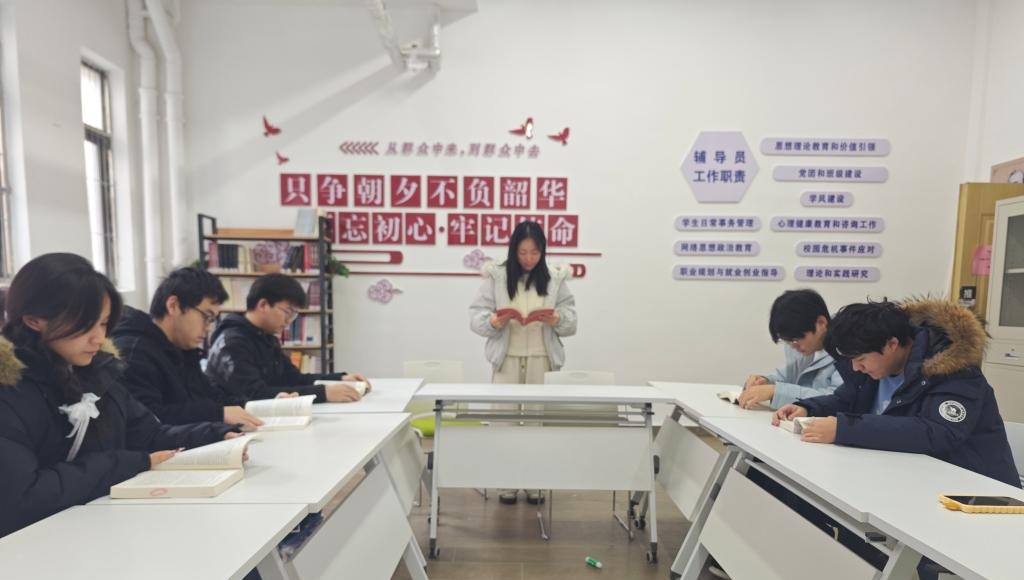 活动以《中国共产党简史》《红色家书》等经典书目为载体,通过"领读+接龙+感悟分享"的互动模式展开。学生党员代表声情并茂地诵读《可爱的中国》节选,带领全体成员重温革命先辈的赤子情怀;党员们接力朗读《习近平的七年知青岁月》片段,结合自身成长经历畅谈"青年担当"。