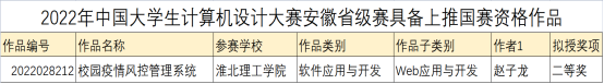 近日,由安徽省教育厅主办,安徽大学承办的“2022年中国大学生计算机设计大赛安徽省级赛”落下帷幕,beat365官网通信工程(专升本)2班赵子龙同学在在软件应用与开发大类中荣获二等奖。