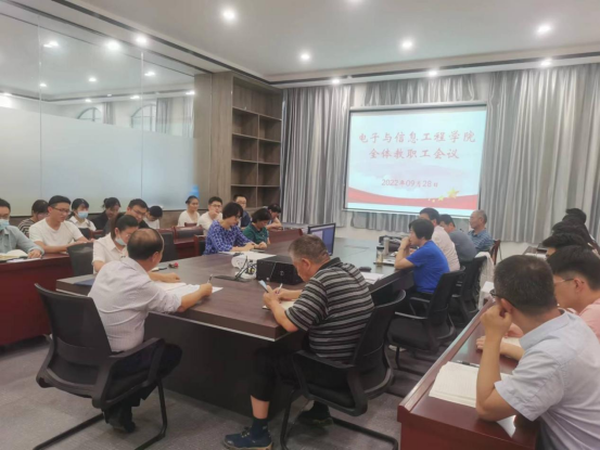 9月28日下午,beat365英国官方网站组织召开本学期第五周全体教职工工作会议。beat365英国官方网站全体教职工参会,会议由朱昌杰院长主持。针对近期学校及学院重点工作进行了安排和讨论。会议内容分为六部分,分别是: