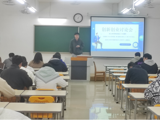 为了积极引导大四毕业生了解创业知识,培养创业意识,提高创业能力,11月22日beat365英国官方网站于二教323召开了创新创业讨论会。会议由学生会牵头,各班班委进行组织学习,就关于“深入学习贯彻党的二十大,全面提高人才自主培养质量,着力造就拔尖创新人才”为主题,同学们就自身的理想、创新创业想法及就业方向各抒己见,积极上台进行演讲与分享。