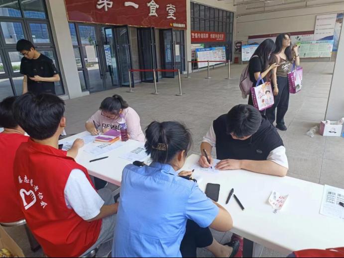 上午9点,献血活动正式开始,志愿献血的同学们陆续到来。大学生志愿者们询问他们的身体情况,指导符合献血要求的献血者进行线上扫码登记,并填写无偿献血志愿申请表。随后志愿者对献血者进行血压、脉搏的测量,以确保献血者自身的安全。献血前的准备事项全部完成后,献血者登上献血车,在医护人员的帮助下,完成献血。