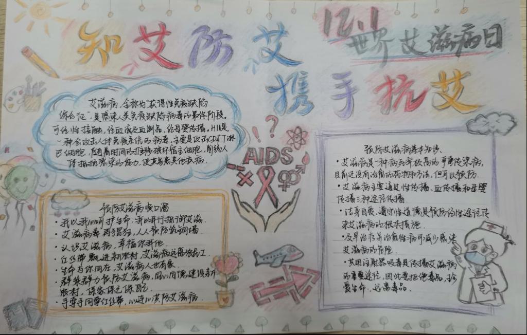 为提高学生对艾滋病的认识,倡导健康生活方式,促进校园防艾工作的深入开展。beat365英国官方网站举办了以“预防艾滋,珍爱生命”为主题的手抄报活动。