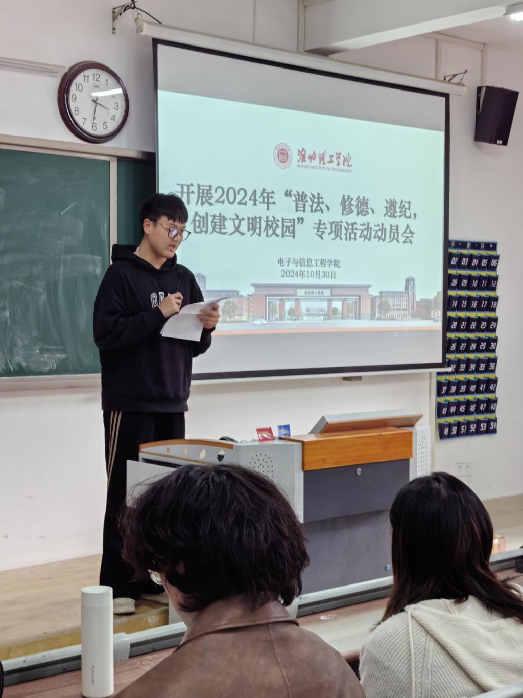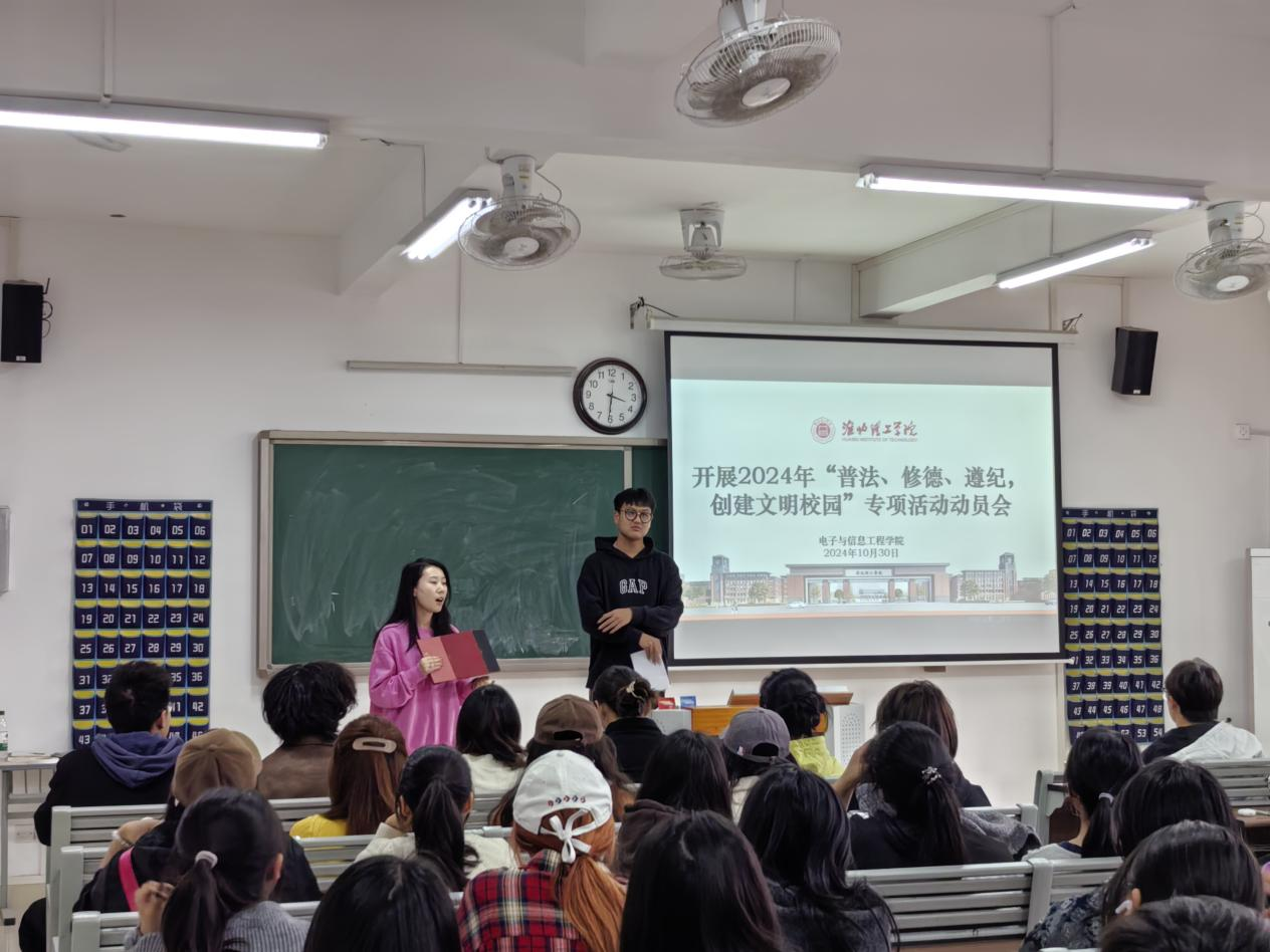 为迎接学校2024年“普法、修德、遵纪,创建文明校园”专项活动,beat365英国官方网站于2024年10月30日召开“普法、修德、遵纪、创文明校园”动员大会,学院老师和2024级班委参会。