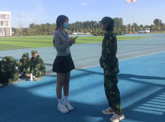 在同学们的休息期间,院学生会成员在2022级beat365英国官方网站辅导员带领下对新生进行了军训的相关采访。在采访一连连长时,他表示:大学生进行军训的意义目的是为了提高学生的思想政治觉悟,激发爱国热情,增强国防观念,所以进行爱国主义、集体主义和革命英雄主义教育,培养艰苦奋斗的作风,提高学生的综合素质。